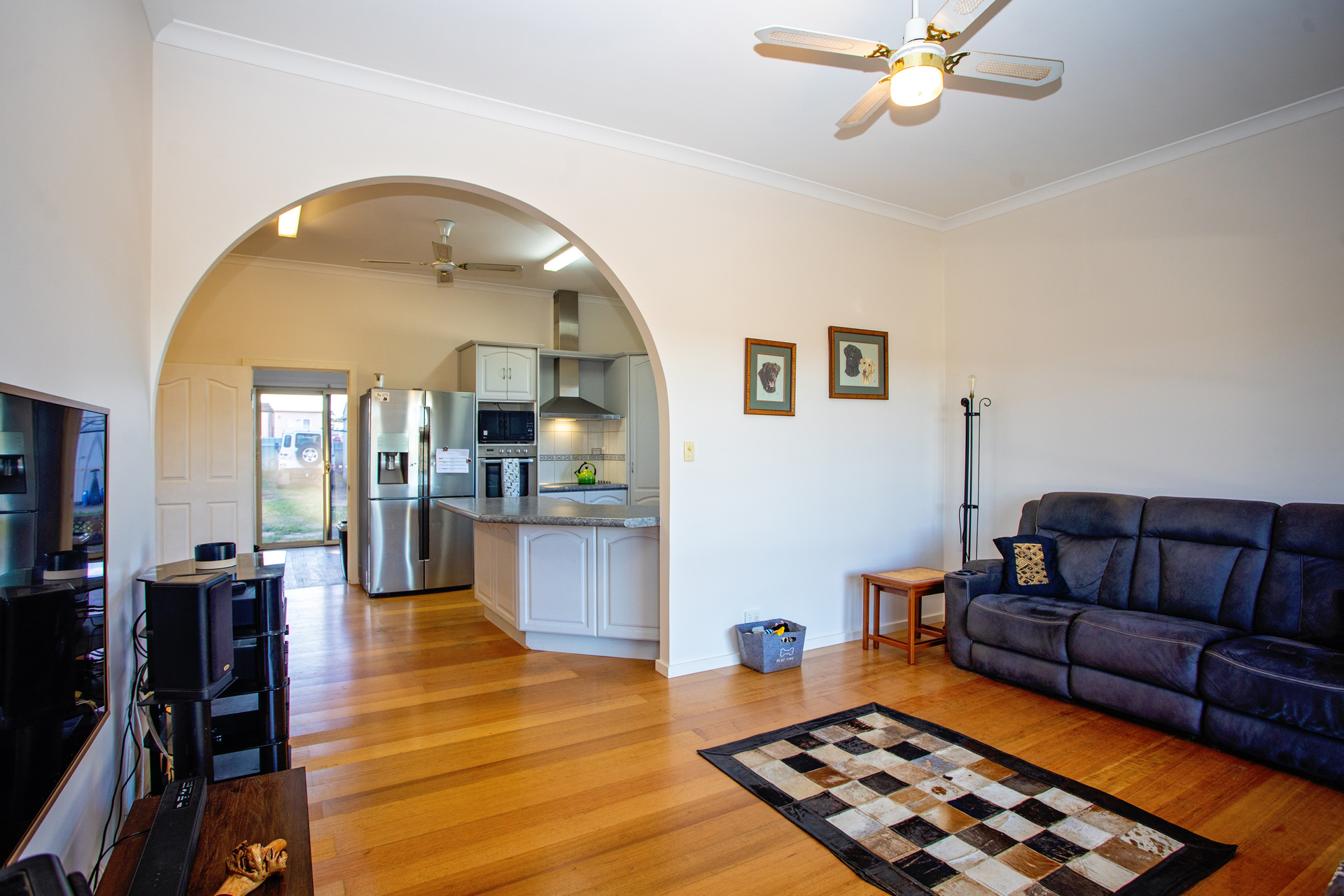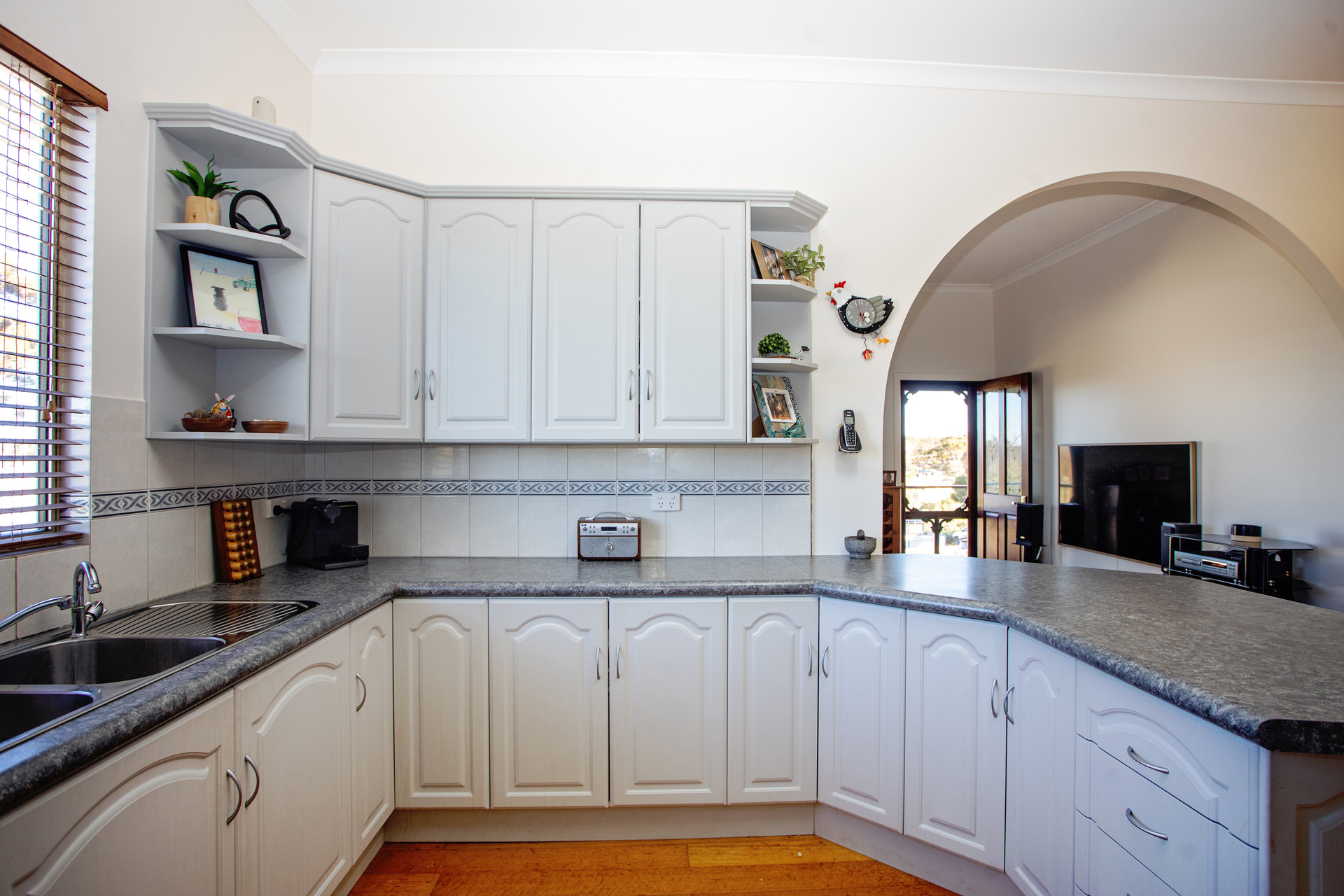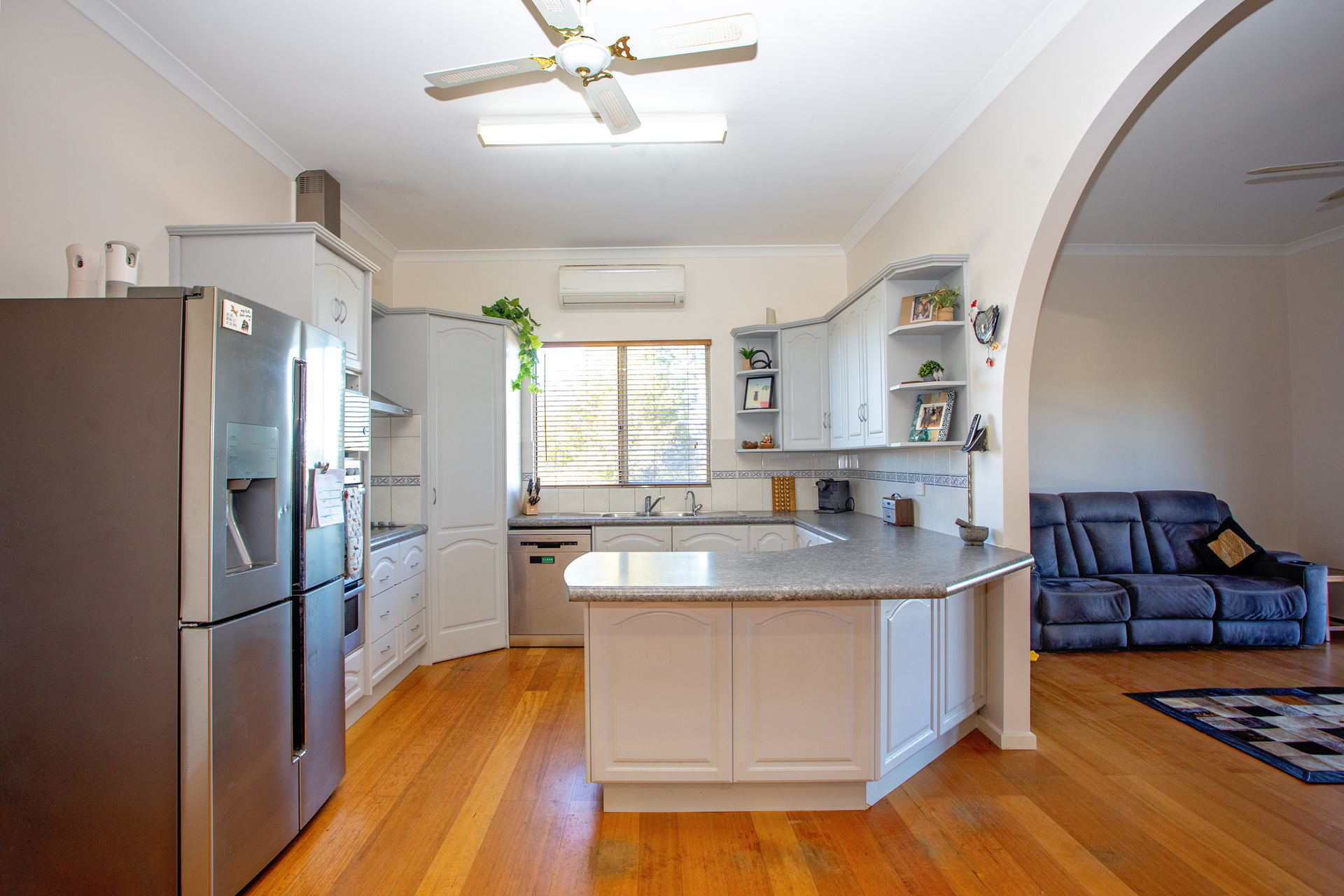 The kitchen serves as the heart of the home, adorned with a beautiful archway that seamlessly links the living and dining spaces. Complete with fitted cabinetry and stainless steel appliances, it effortlessly accommodates all your hosting requirements, offering extensive storage solutions to neatly put away your essentials.
