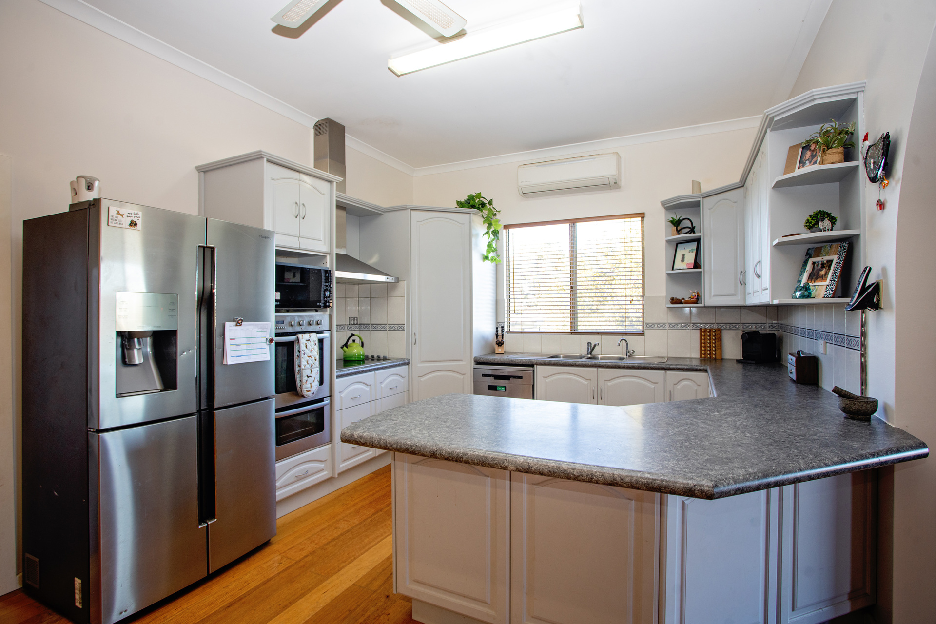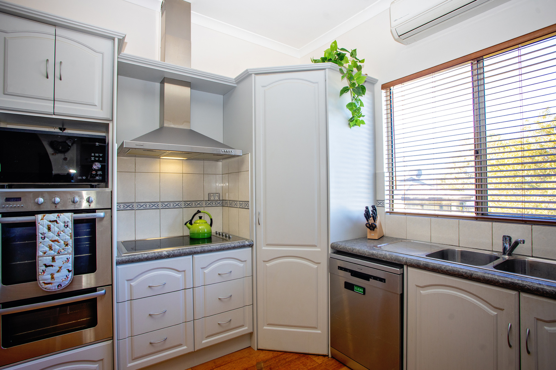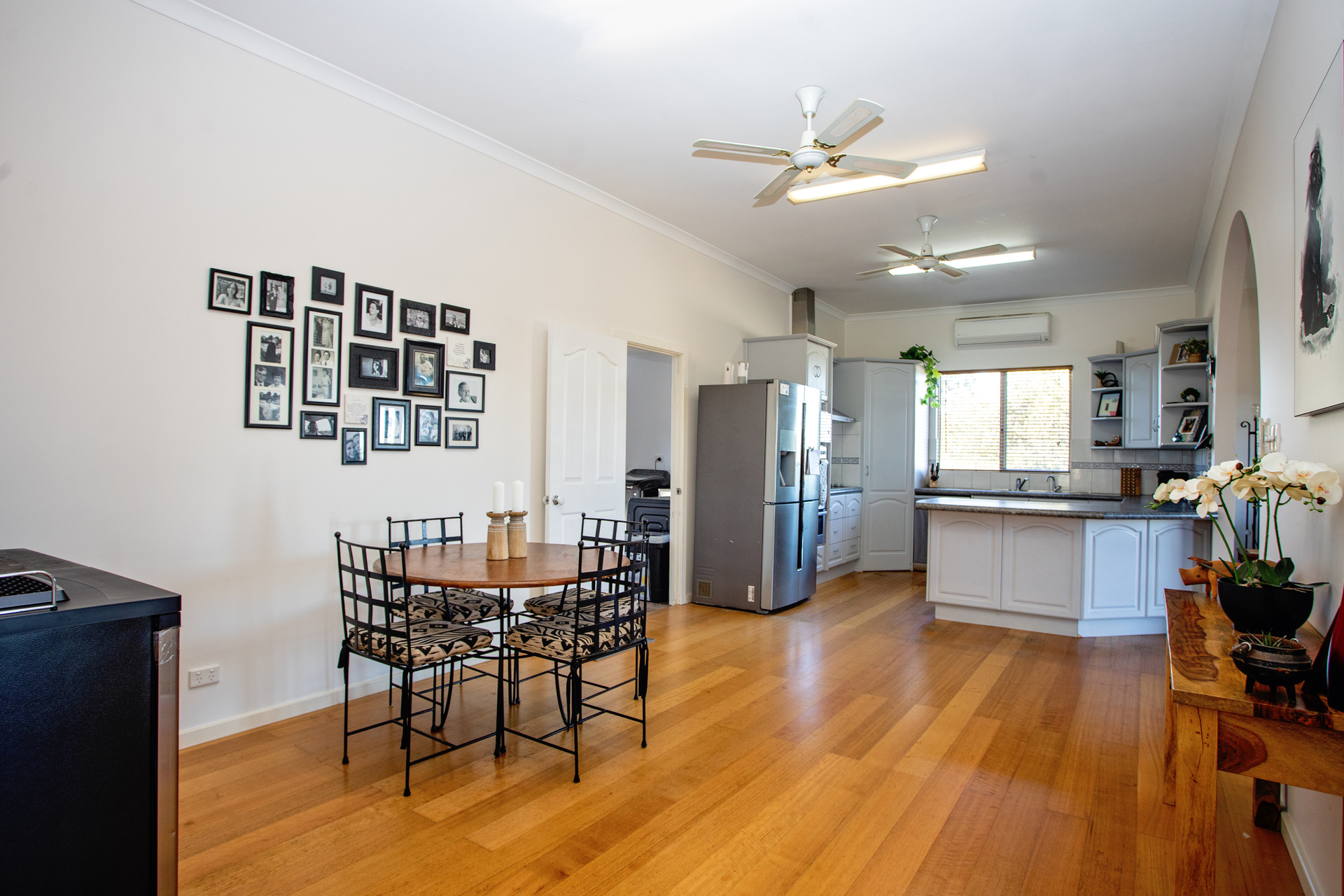 The kitchen serves as the heart of the home, adorned with a beautiful archway that seamlessly links the living and dining spaces. Complete with fitted cabinetry and stainless steel appliances, it effortlessly accommodates all your hosting requirements, offering extensive storage solutions to neatly put away your essentials.